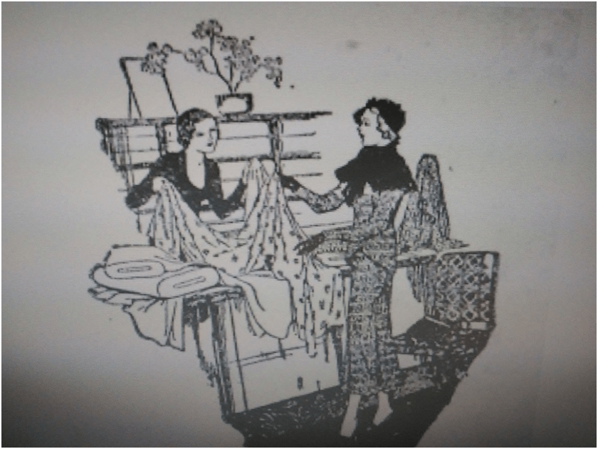 Con relación al trabajo femenino como vendedoras y costureras, se encontraron algunos registros gráficos como los avisos publicados por una tienda icónica de principios del siglo 20 como Harrods; la imagen de la vendedora fue representada también por el discurso literario y el cinematográfico, haciendo hincapié en una imagen romantizada de la víctima frágil acechada por un seductor. En la gráfica, mediante la ilustración se representaba a la mujer como una diosa griega y se apelaba a la mujer aristocrática como audiencia. En la enunciación visual la vendedora aparecía como una mujer solícita, detrás del mostrador (Mundo Argentino) atendiendo a su clienta, la amabilidad y el buen trato eran considerados clave para el trabajo.