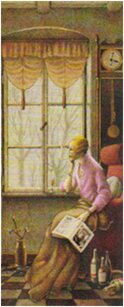 En la última ilustración seleccionada de Innocenti (Imagen 12) el artista como narrador propone un final alternativo para la malvada madrastra, se la puede ver sentada en una actitud que denota desaliento, aburrimiento; fumando y rodeada de botellas vacías. Un final poco feliz para un personaje icónico dentro de la literatura infantil.